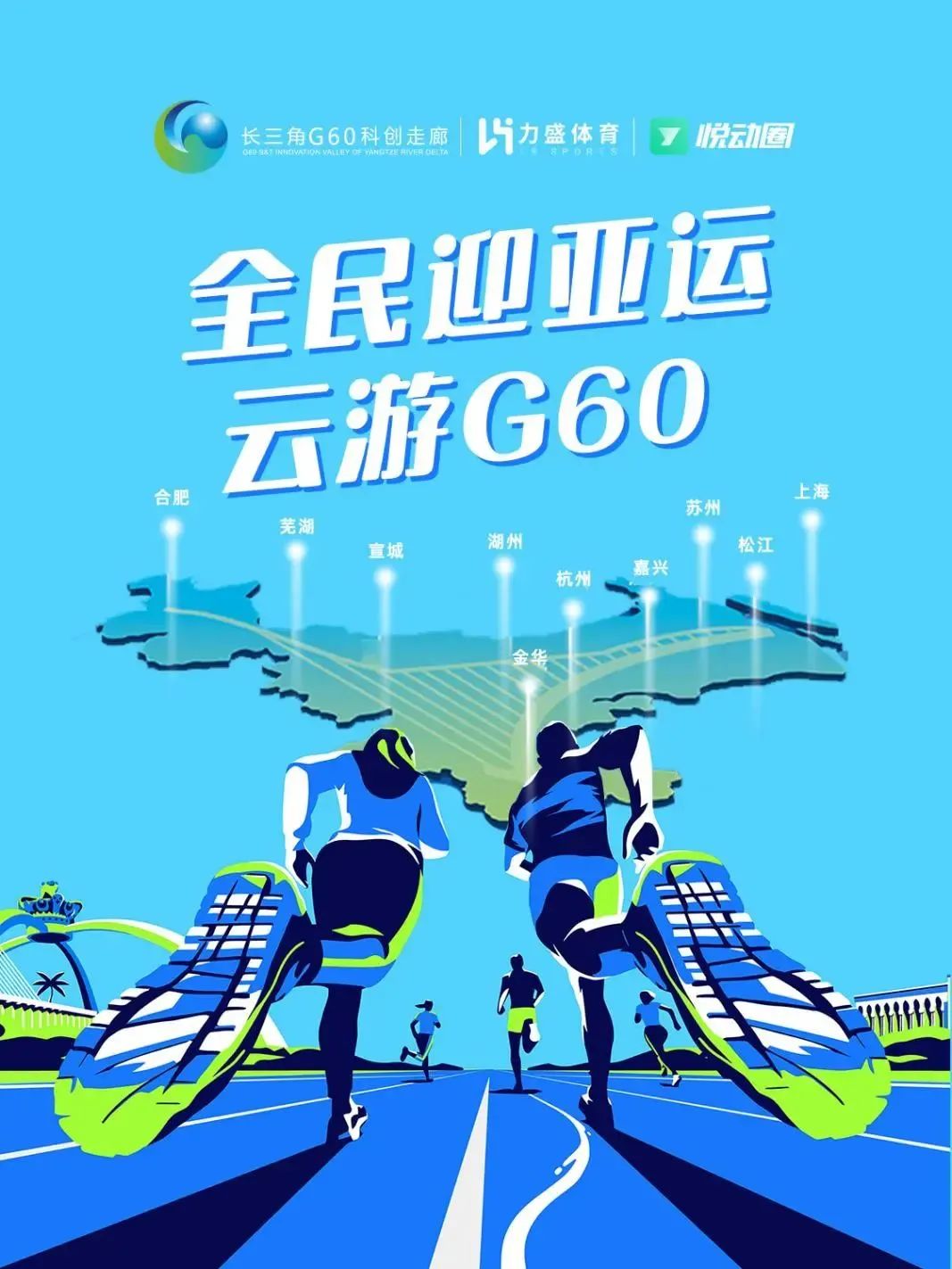 作为长三角G60科创走廊九城之一的杭州,即将于9月23日举办杭州第19届亚运会。为迎接亚运盛会,扩大长三角G60科创走廊影响力,G60科创走廊与悦动圈携手,通过互联网体育平台,以低门槛和趣味化的活动组织方式,吸引全国运动爱好者参与活动,向全国介绍长三角G60科创走廊九城。
