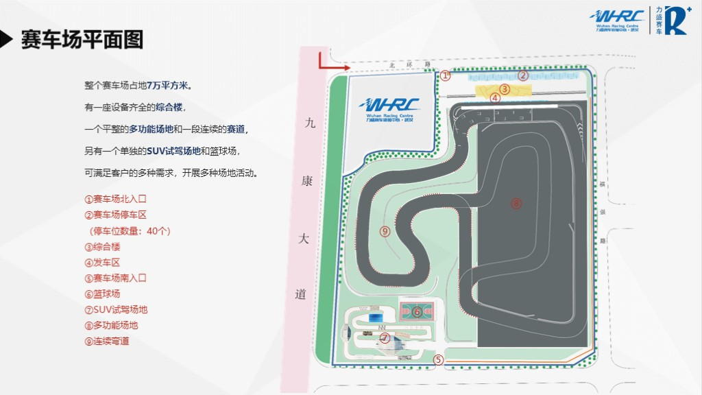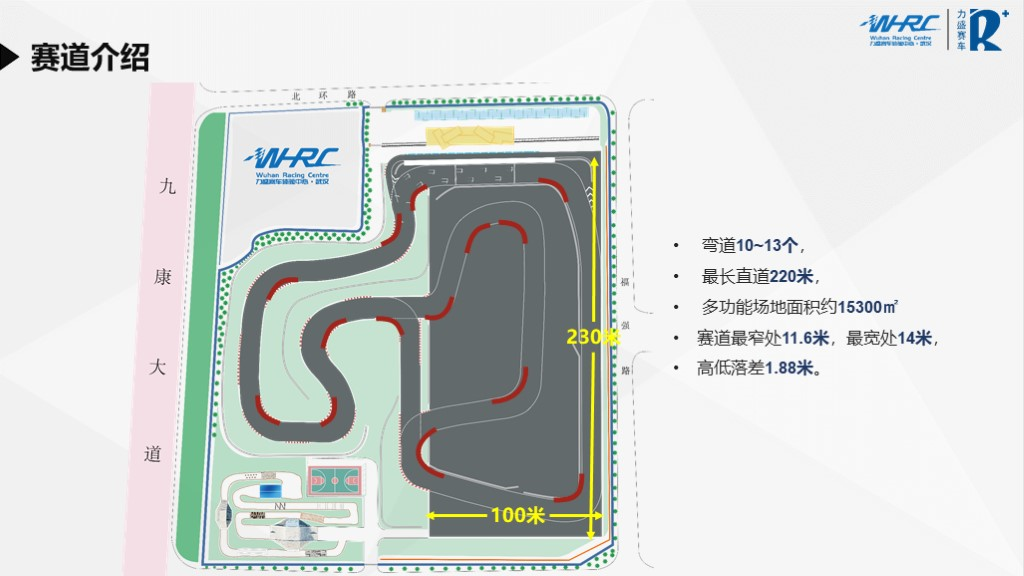 hb火博赛车体验中心.武汉,是hb火博集团全国区域布局的华中首站,是汽车运动与全体验营销新模式的探索。整个赛车场由杰出赛道设计专家姚启明博士亲自操刀设计,弯道缓冲均按照国际汽联标准设置。整个赛车场占地7万平方米。有一座设备齐全的综合楼,一个平整的多功能场地和一段连续的赛道,另有一个单独的SUV试驾场地和篮球场,可满足客户的多种需求,开展多种场地活动。