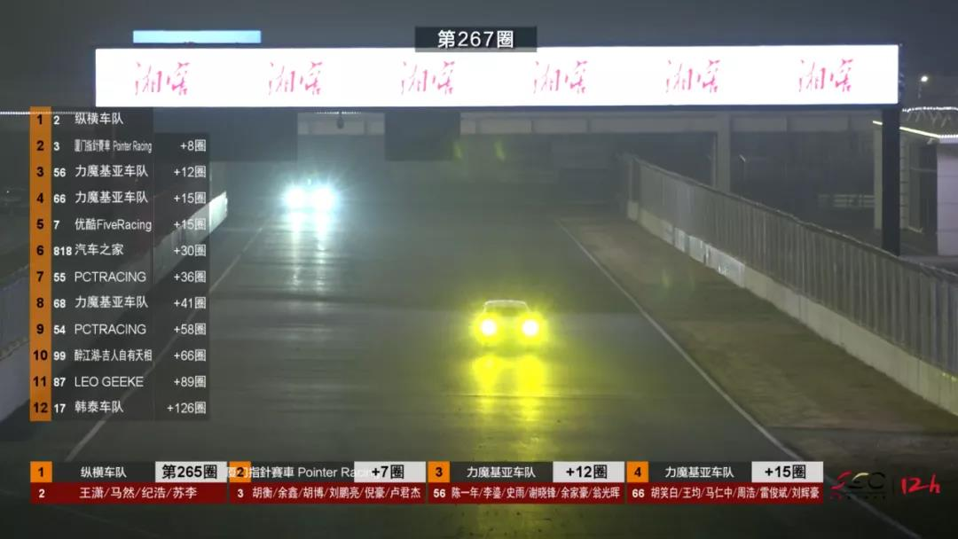 通过12小时的耐力比拼,来自纵横车队的2号车组(车手:王潇、马然、纪浩、苏李)率先迎接方格旗的挥动,拿下全场冠军的同时也赢得了C3组别的冠军。333圈的鏖战,注定会成为记录。不犯错、不言弃的表现昭示着冠军之师纵横车队一直以来的专注和四位车手的热忱。