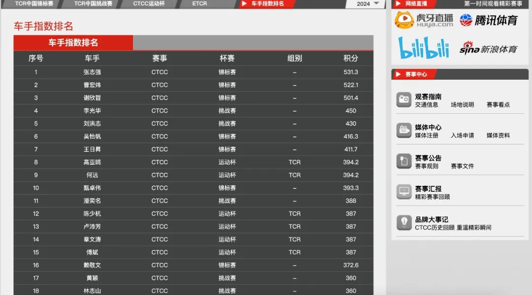 2024赛季CTCC三大组别造访了六条顶级赛道,分别是株洲国际赛车场、上海国际赛车场、浙江国际赛车场、大庆赛车小镇、宁波国际赛道、东望洋赛道。